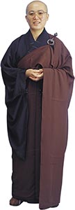 以上所說的一切,都是有關於「袈裟」的傳統規制。佛教東來以後,由於空間的轉移、和時間的變遷,「袈裟」的原本形象,已經有些破壞!現在的「袈裟」:幅面已經縮小,質料日趨浮華;著用時也只是繞身一匝、披搭肩上便是了。